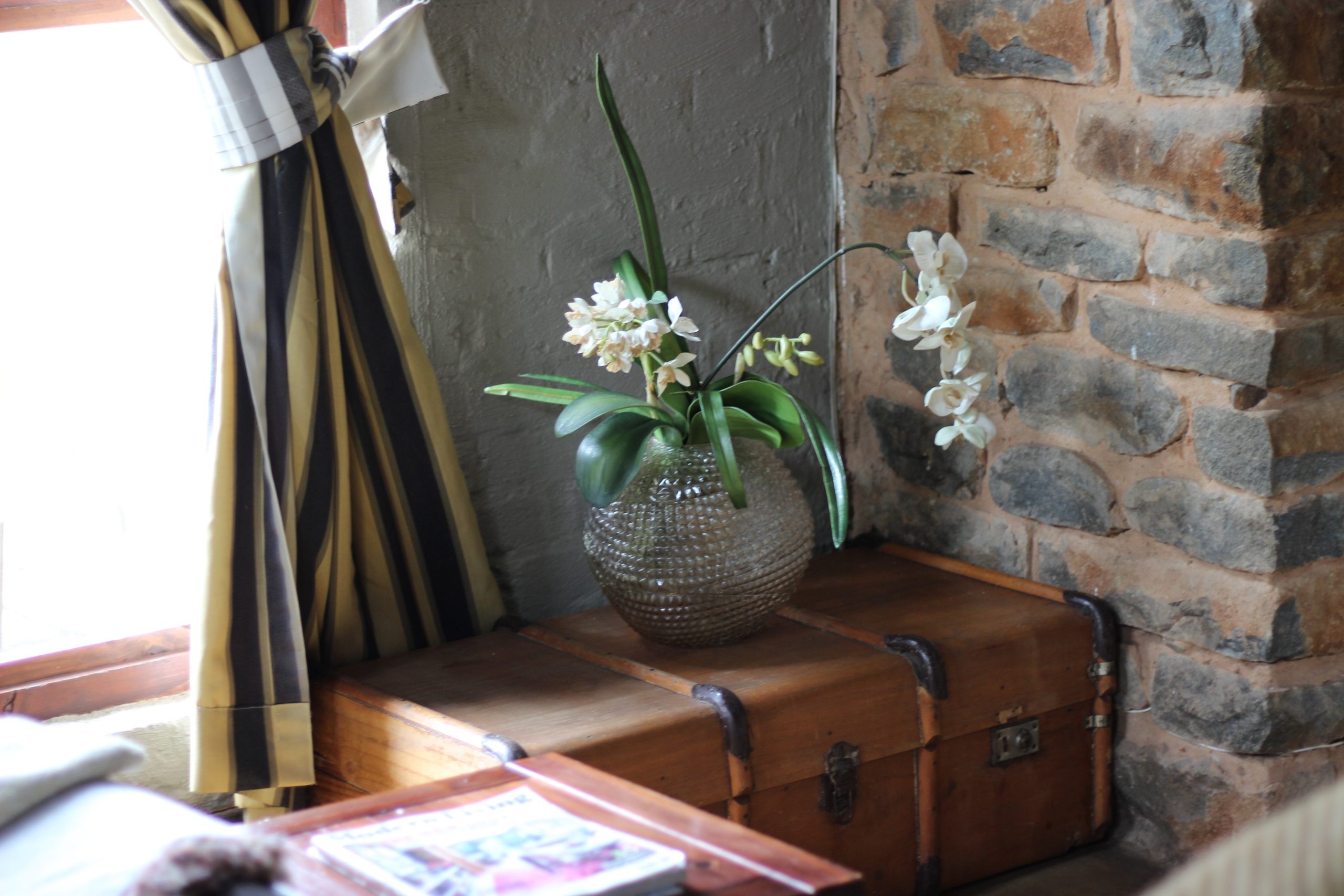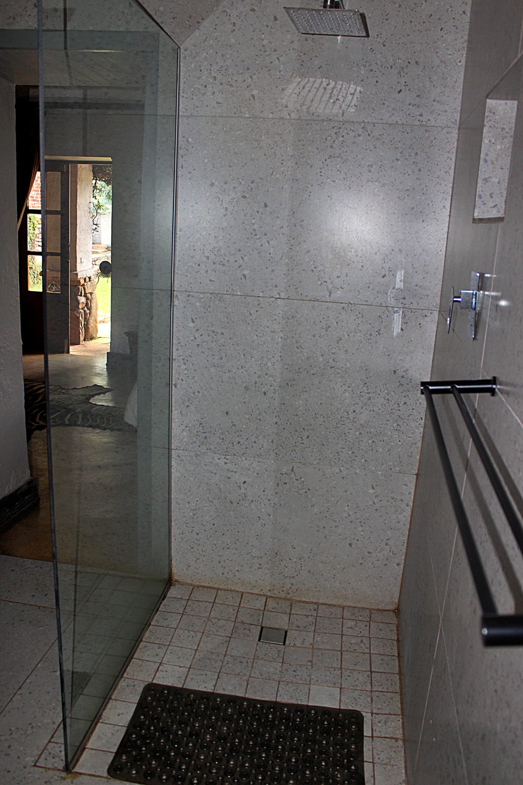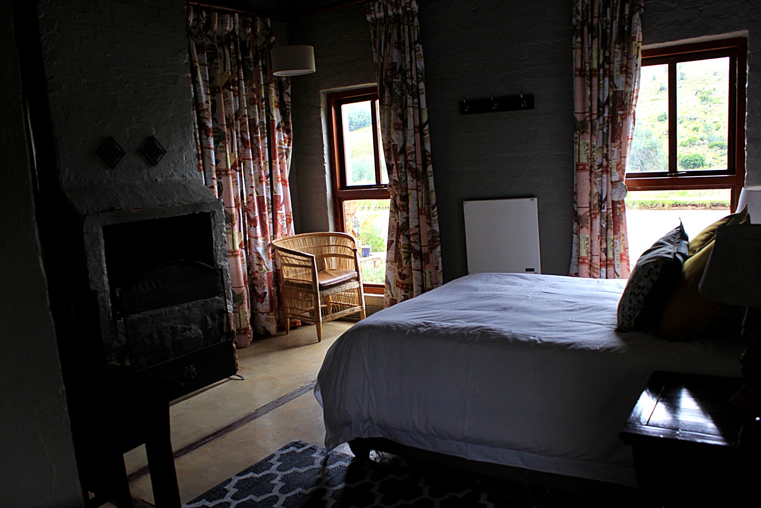- Patio with built-in braai, overlooking the trout dam and mountain range.