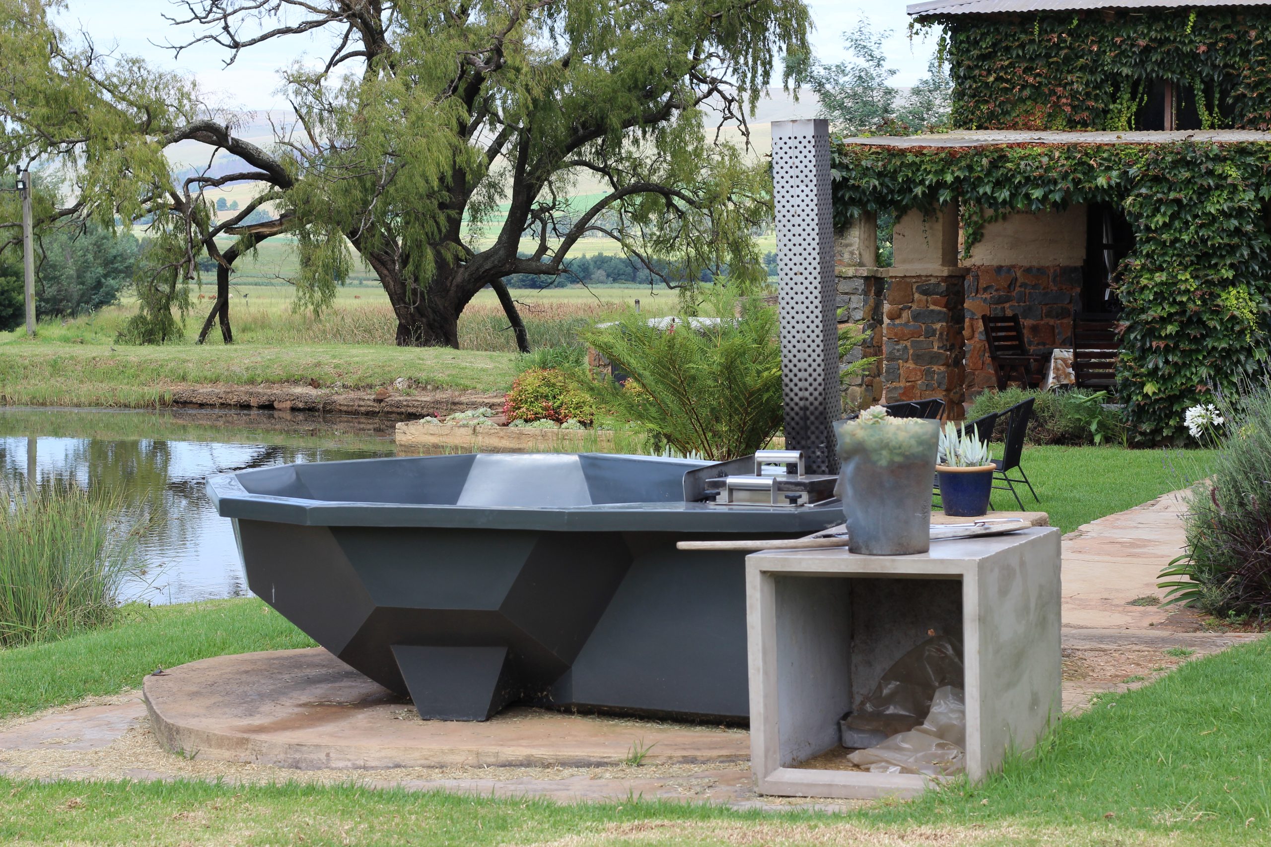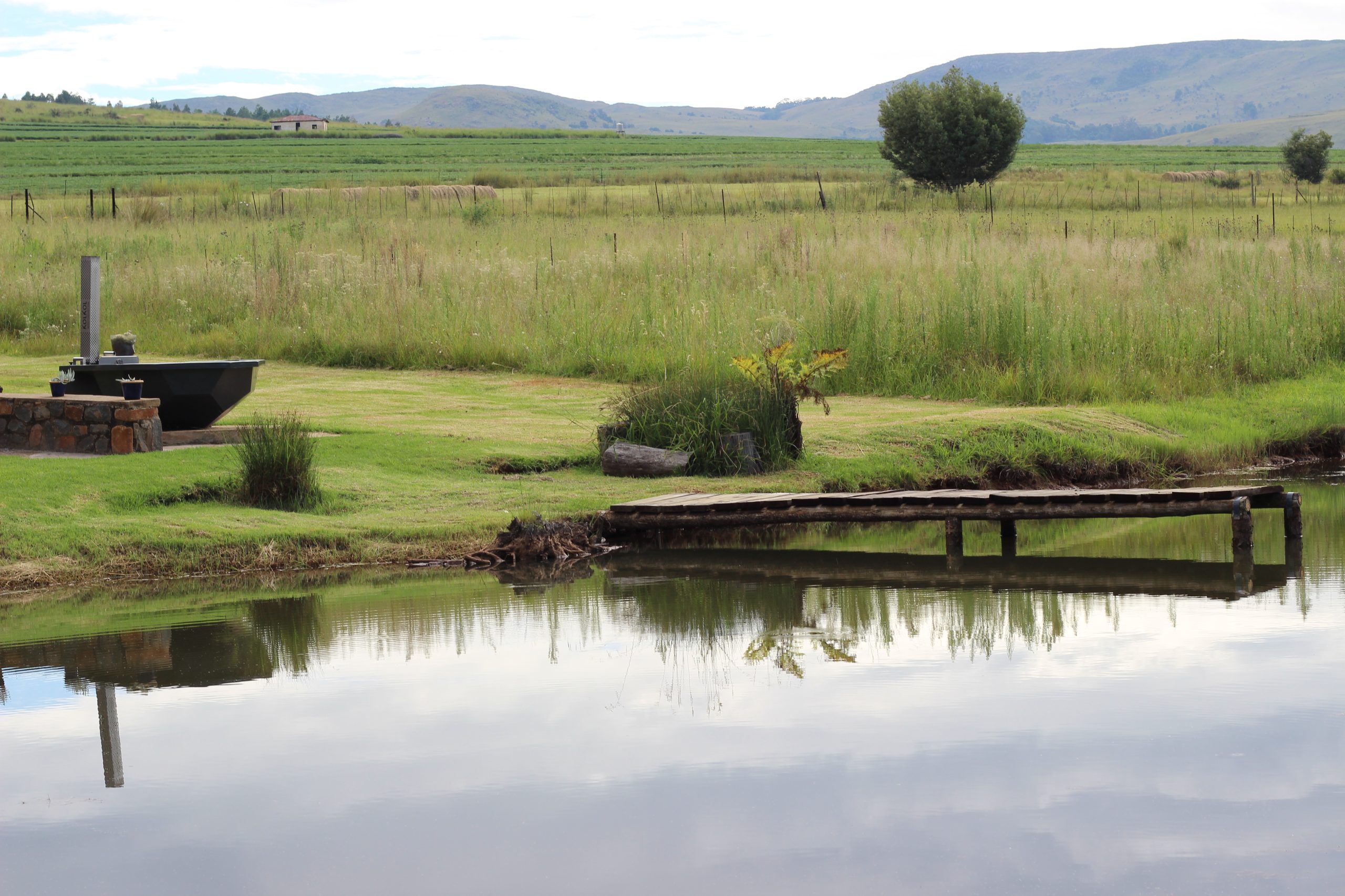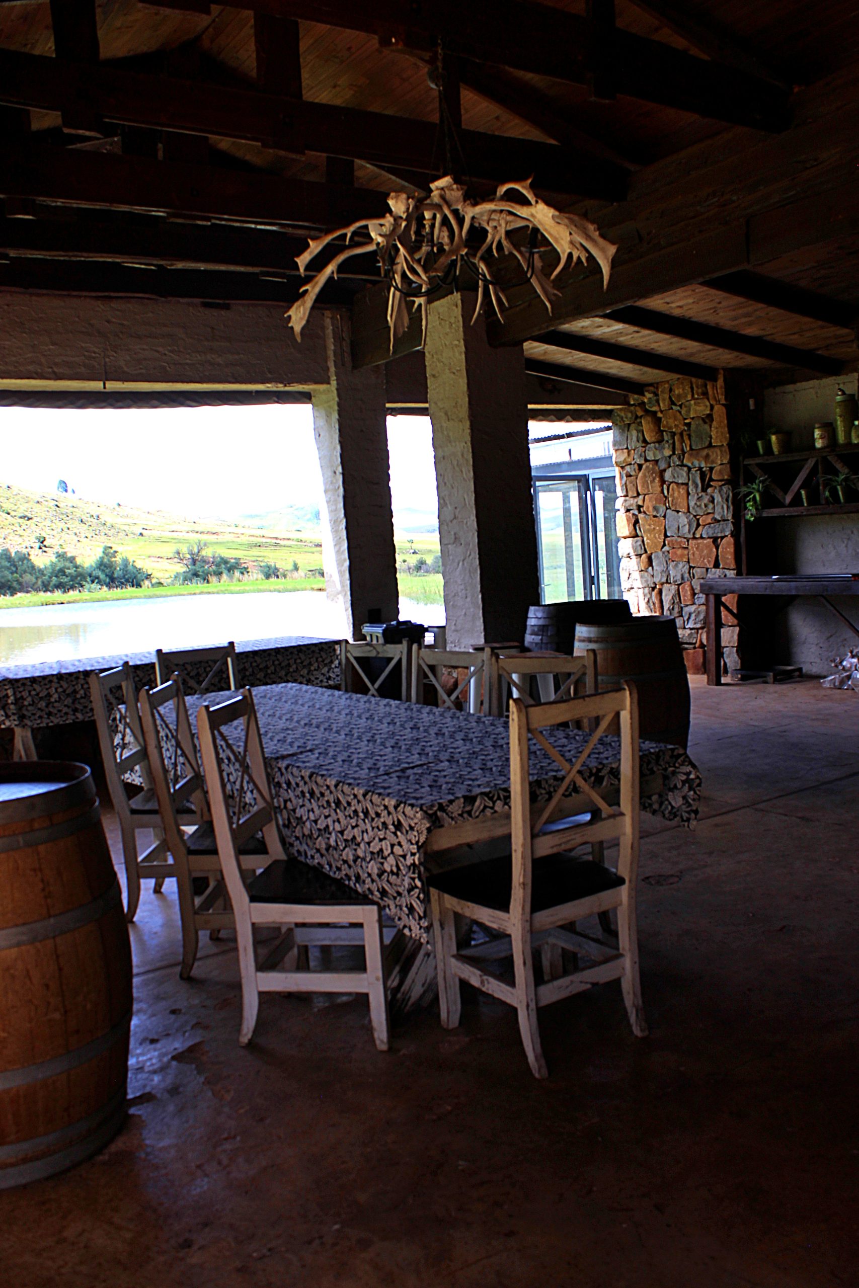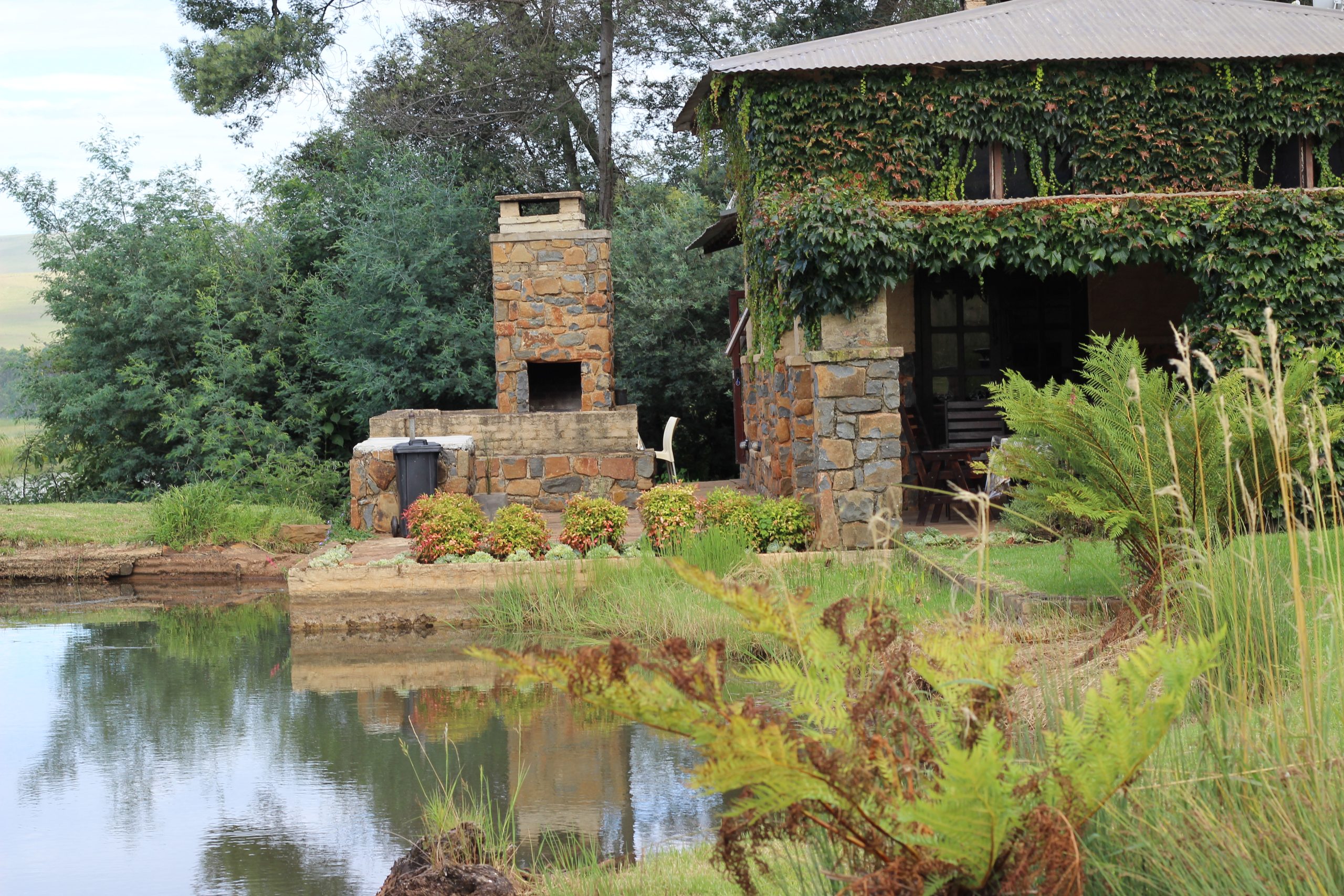 - Outside braai facilities and patio overlooking the trout dam.