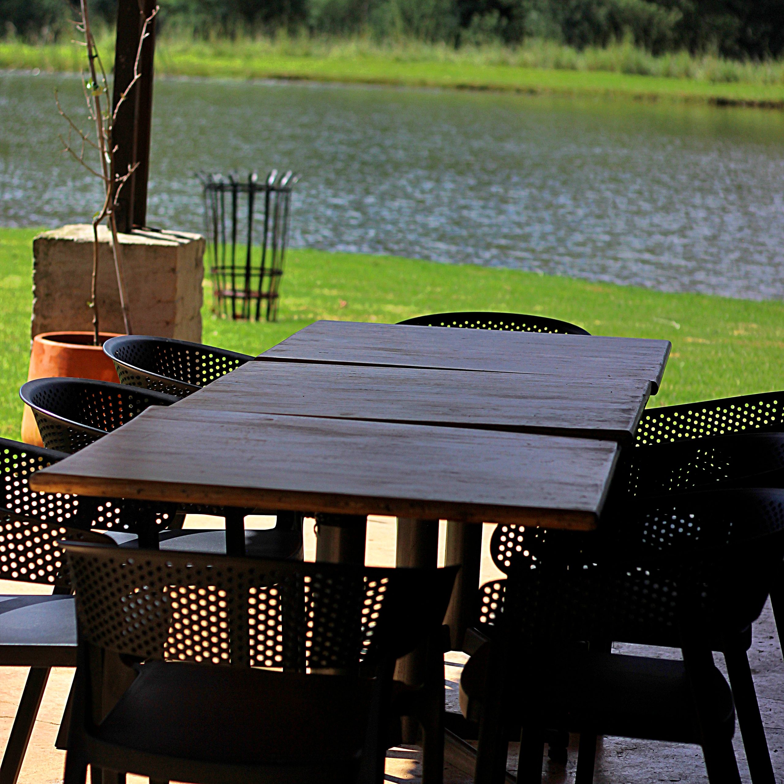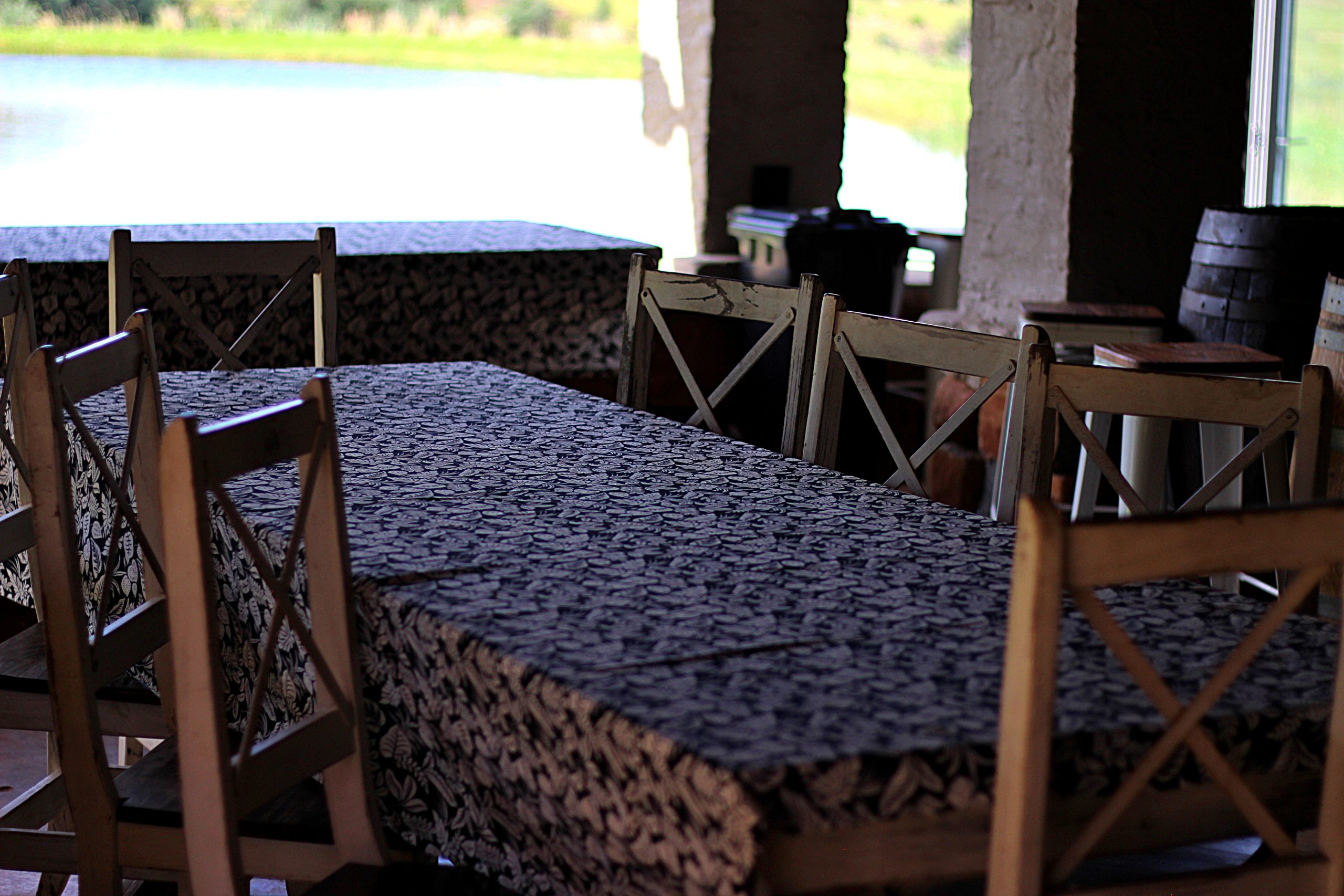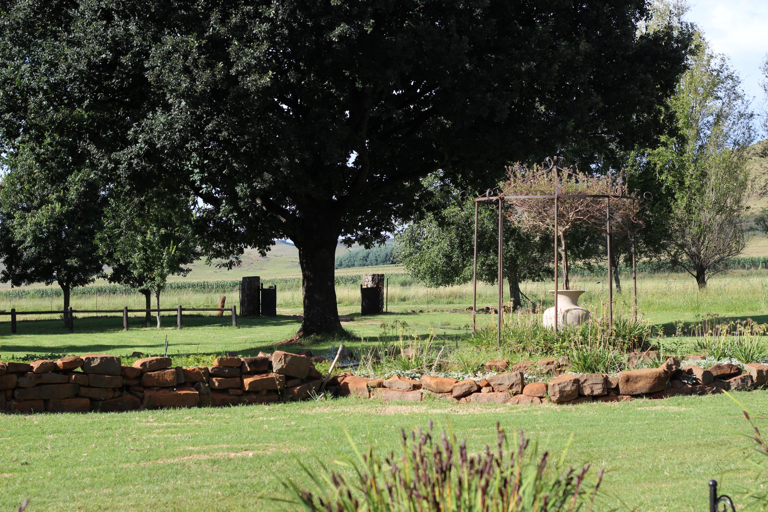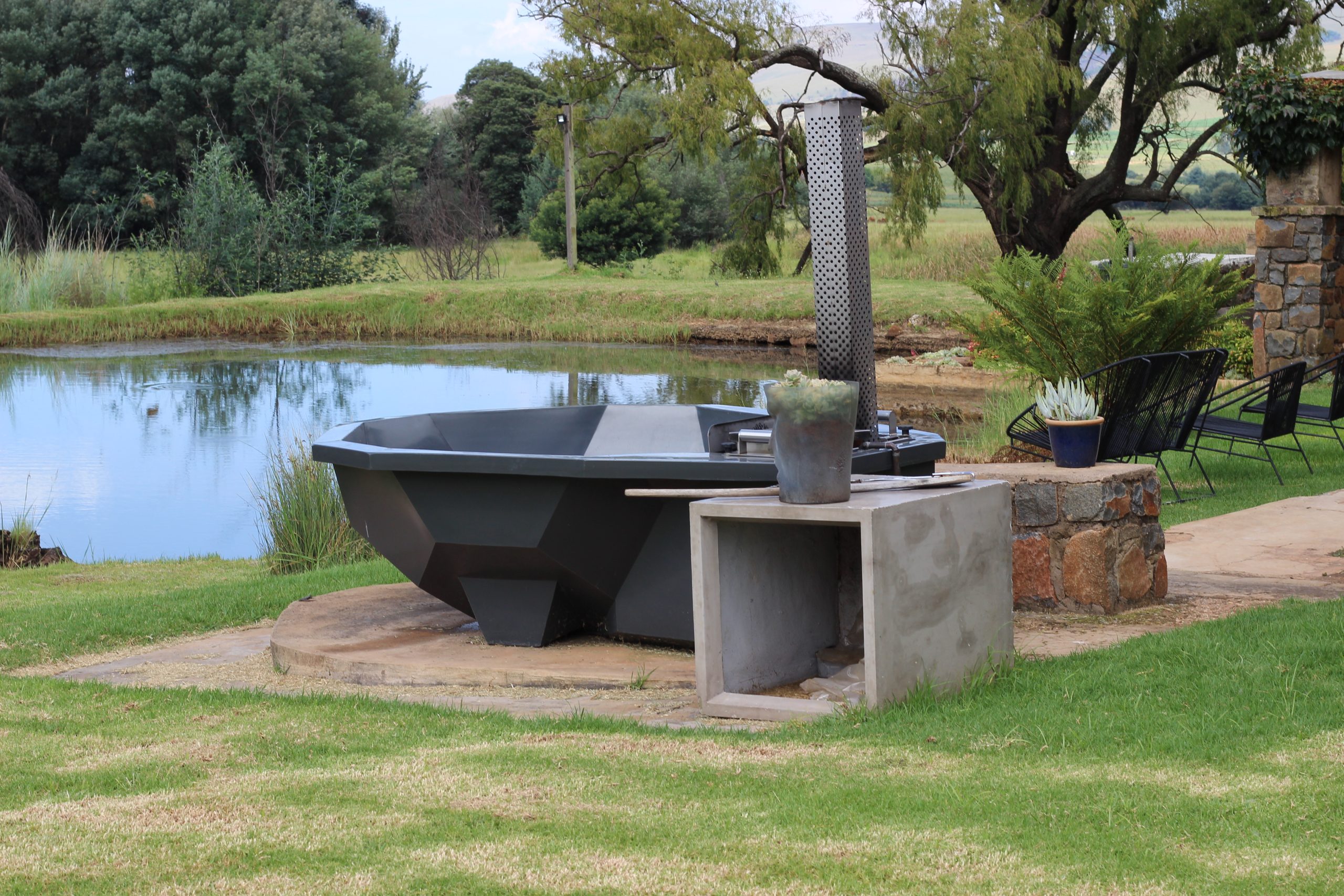 - Outside braai facilities and patio overlooking the trout dam.
