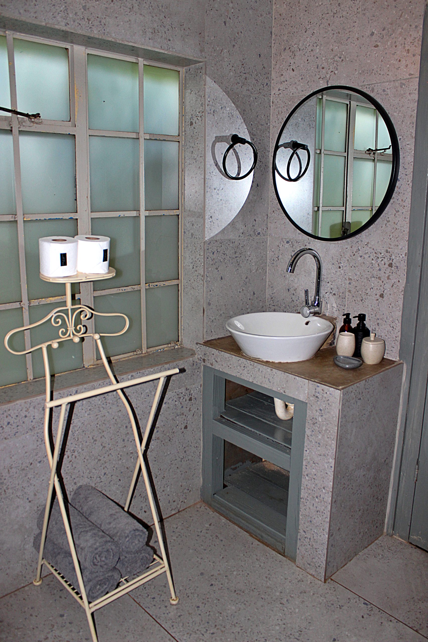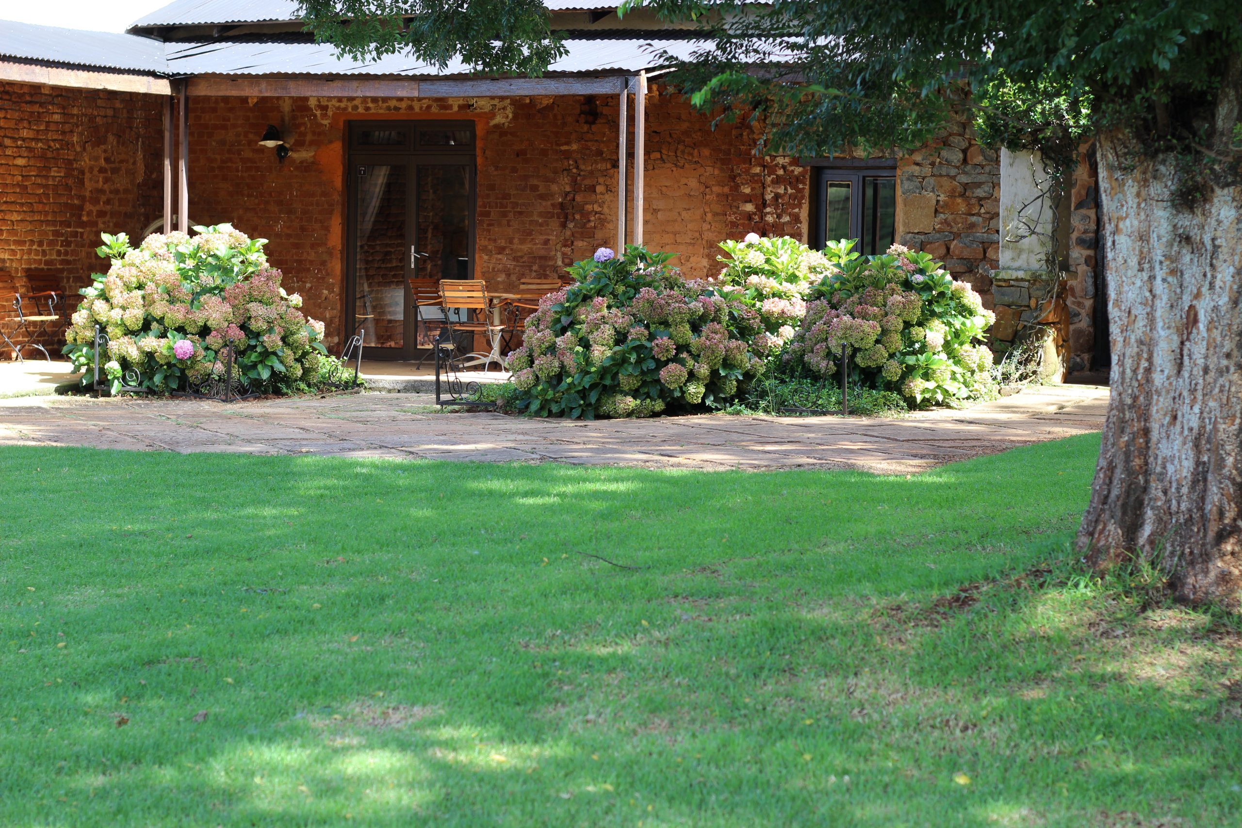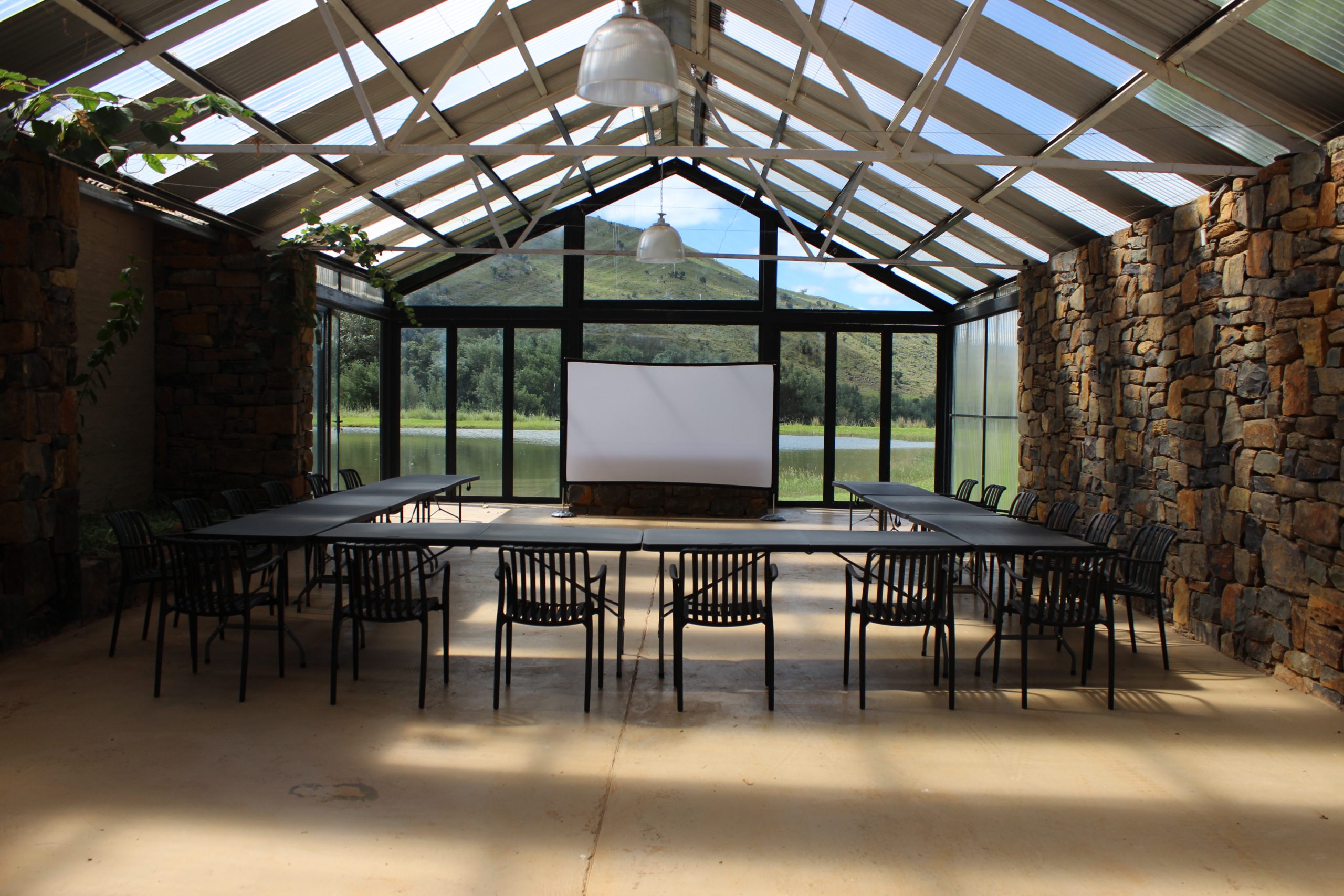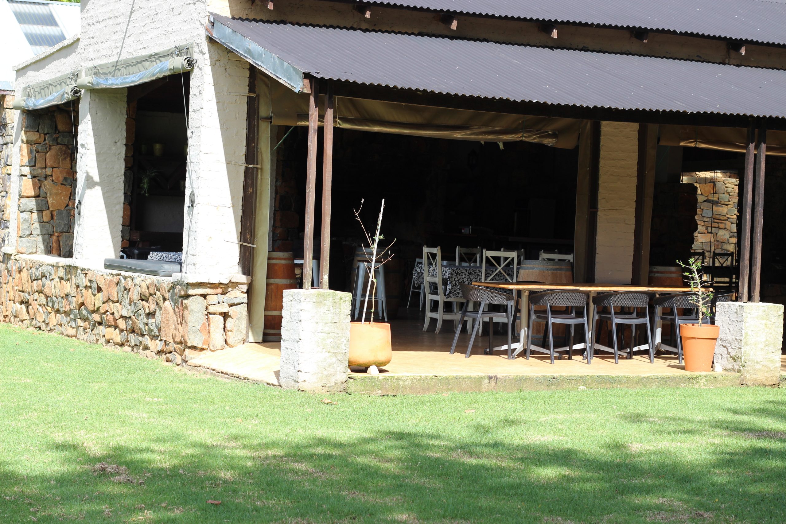 - Outside braai facilities and patio overlooking the trout dam.