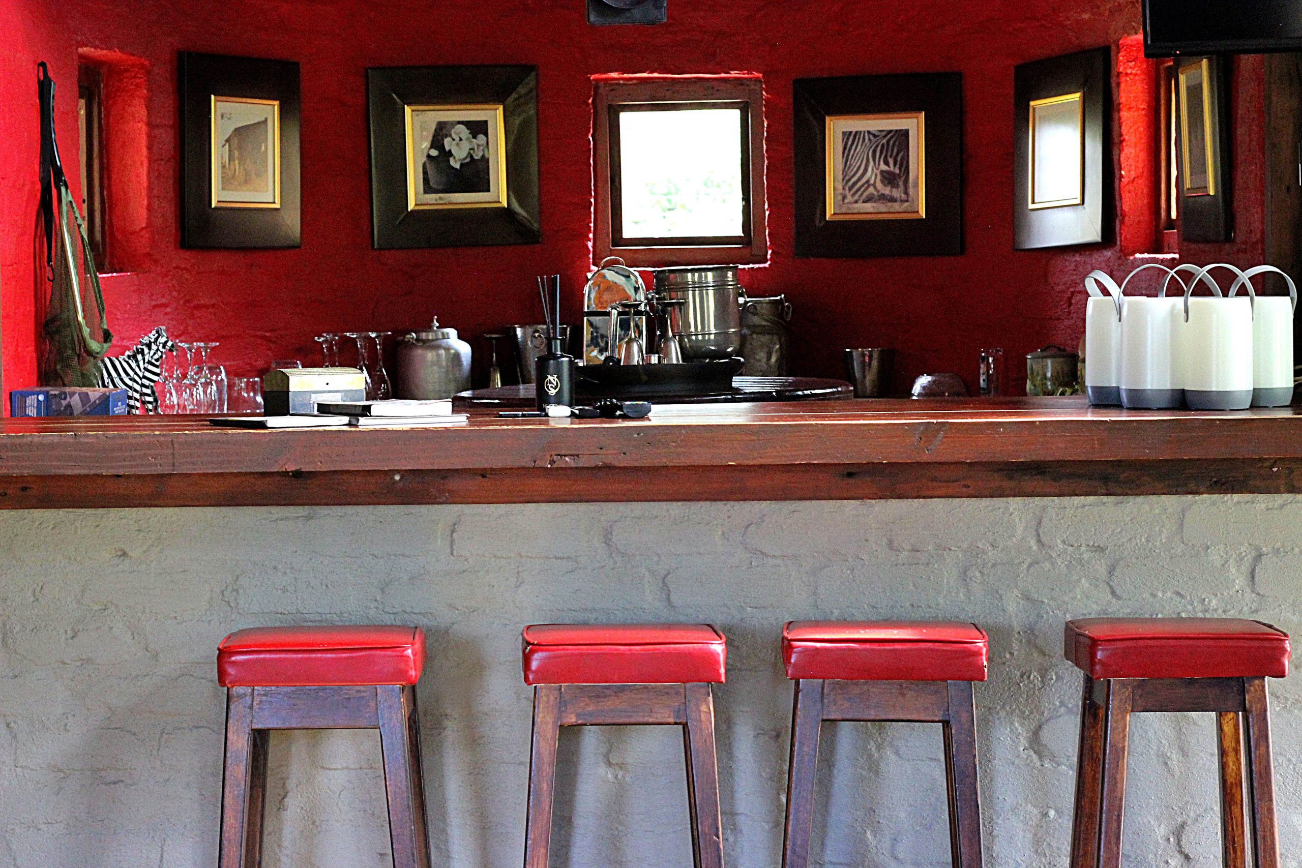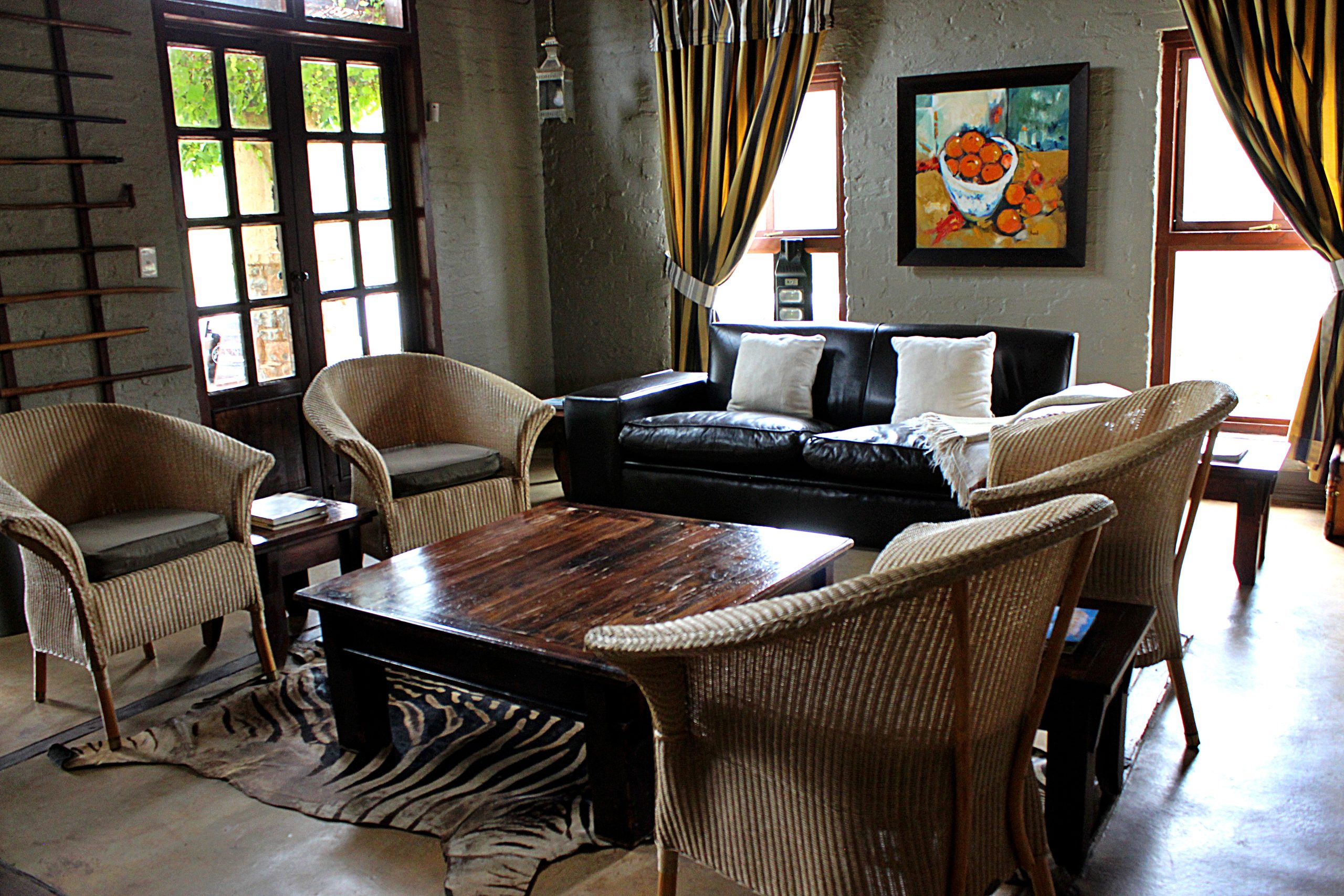 - Comfortable living room with bar area, indoor braai facilities, and fireplace.